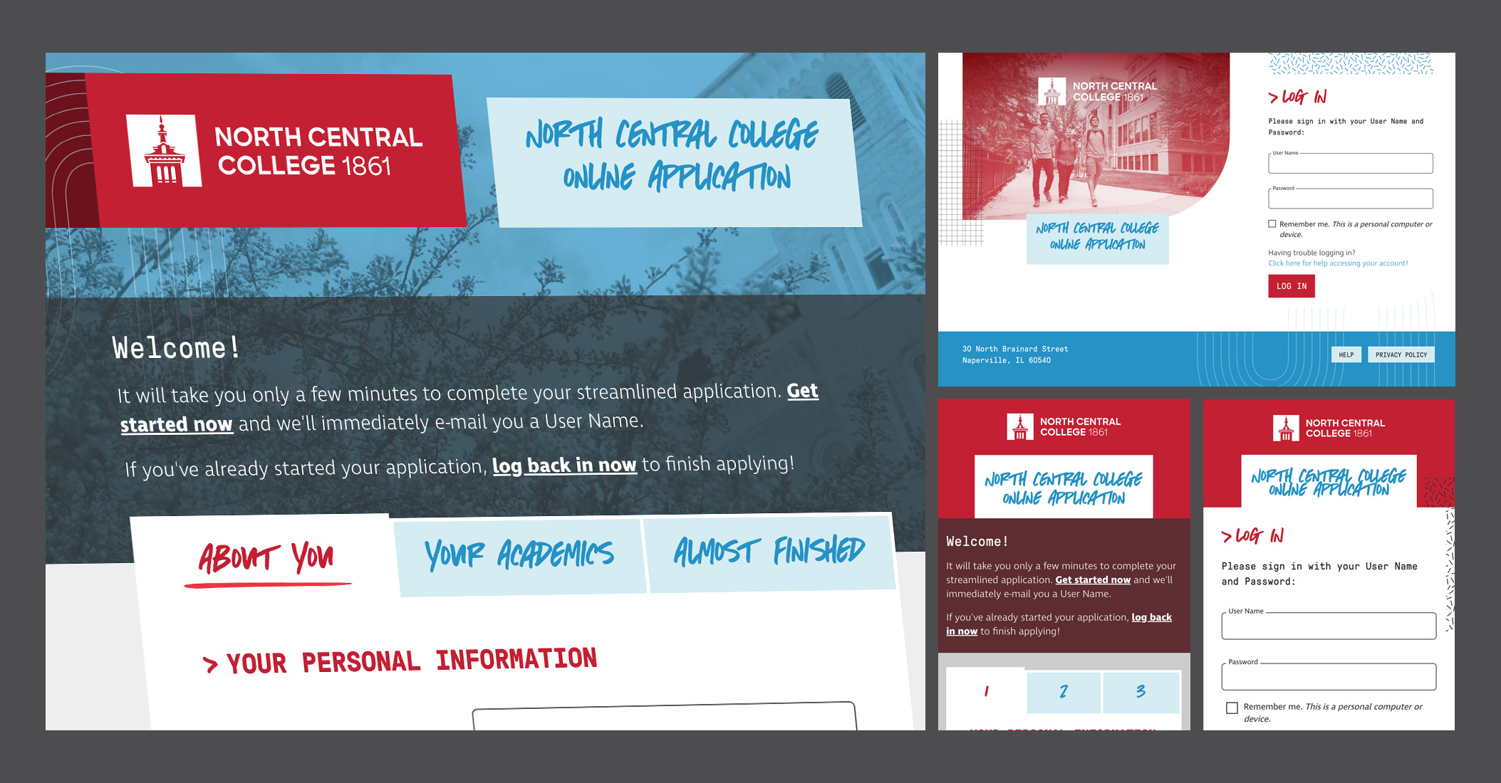 North Central College has a great brand that uses lots of textures, shapes, color overlays and lines. I designed this web application using those elements along with their custom fonts.